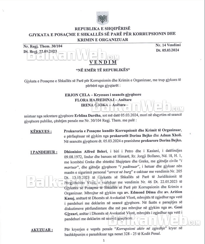 Në vendimin e arsyetuar për dënimin e Fredi Belerit, kryetarit të zgjedhur të Himarës dhe bashkëpunëtorit të tij Pandeli Kokaveshi, Gjykata e Posacme rrëzon dy nga argumentat më të forta të mbrojtjes.