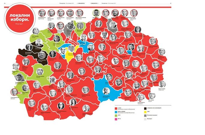 MAQEDONI-LSDM, sipas rezultateve pas dy raundeve të zgjedhjeve lokale, do të udhëheqë në Shkup dhe 56 komuna, BDI në 10, VMRO-DPMNE në pesë, Aleanca për Shqiptarët në tre, BESA, PDSH dhe PDT në nga një komunë, ndërsa kandidatët e propozuar prej grupeve të votuesve në tre komuna.